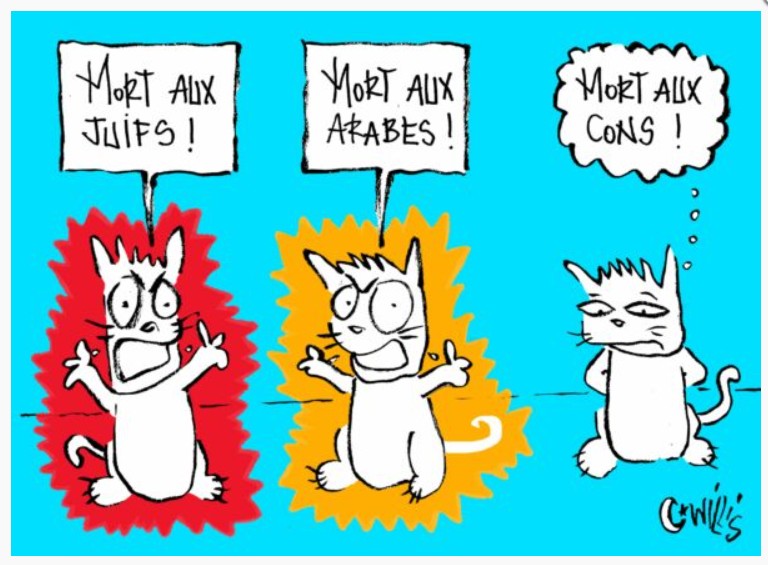 L’essentialisation de la judaïté est une escroquerie de bas-étage, une monstruosité même, visant à créer de la confusion dans les esprits les plus vulnérables, une diversion minable. Ce au moment où, aussi bien en France par la stigmatisation humiliante dont il font l’objet, qu’au Moyen-Orient où ils sont massacrés, victimes d’un génocide dont il faut redire inlassablement le nom, d’un apartheid et d’une épuration ethnique partout ailleurs en Palestine, au Liban et en Iran, les musulmans sont ostracisés, rejetés, désespérés. La diversion est monstrueuse et ce qui suscite notre colère c’est qu’elle puisse connaître un fort impact dans certaines couches de la société, la haute-bourgeoisie, la ruralité et le petit peuple, spécifiquement. Une majorité de nos compatriotes ne sont peut-être plus dupes de cette grossière manipulation, mais quand même ! Que de dégâts sur certains esprits pervers ou fragiles ! Imaginez que les Le Pen, Bardella, Zemmour et compagnie, surfent sur cette vague de procès en antisémitisme, alors qu’ils sont les héritiers d’un parti fondé par des membres d’Ordre Nouveau, anciens de la Waffen SS, tortionnaires d’Algérie : Pierre Bousquet, Roland Gaucher, Léon Gaultier et le papa, Jean-Marie. Pas l’ombre d’une conscience, d’une morale chez ces gens qui, s’ils accédaient au pouvoir (et la Macronie, Franc Tireur, le Printemps Républicain font vraiment tout pour cela !) feraient un mal terrible à cette France, Ma France, celle de Ferrat, Jean Tenembaum dont le papa portant l’étoile jaune fut dénoncé, déporté à Auschwitz et assassiné au nom de la solution finale.